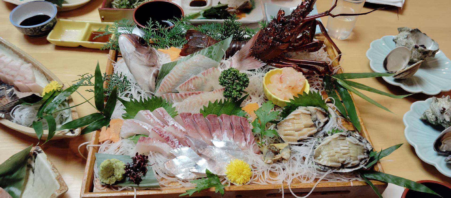 いつかは泊ってみたいと思っていた島のお宿でした。とにかく伊勢海老、あわび、黒メバルをはじめとした地物をふんだんに盛り込み、獲れたて捌きたての素材の良さを活かしきったお料理の数々、他のお宿でも同じような料理は出てはきますが、その質と量が段違いで本当に圧倒されました。宿泊当日は春の嵐で、こちらにも驚かせられましたが、女将さんをはじめ従業員の皆さんにあたたかくお迎え、お見送りいただき、心からゆったりと過ごすことができました。