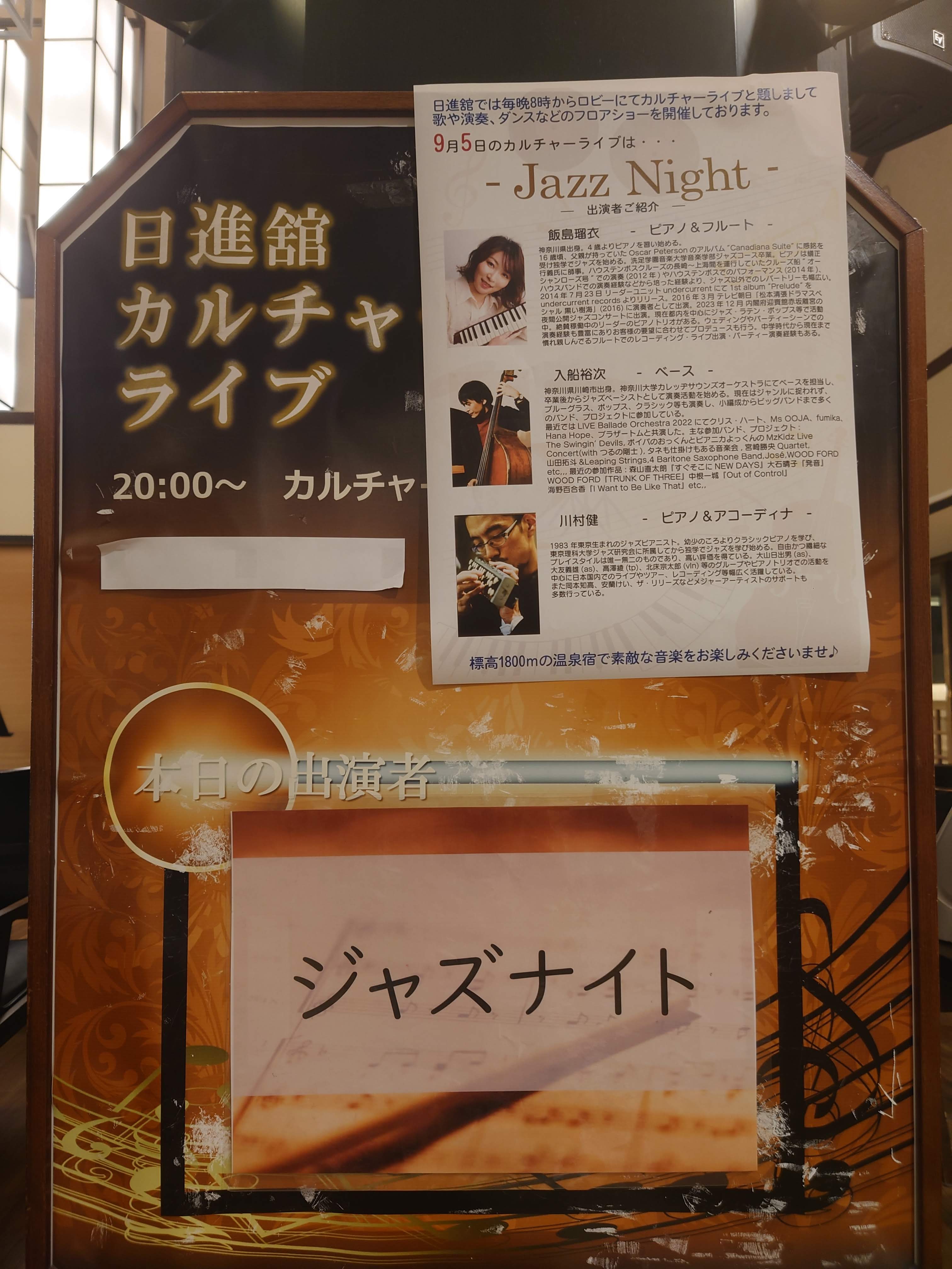 夕食後はロビーで「ジャズナイト」なるイベントがあり、ジャズの生演奏を楽しみました。