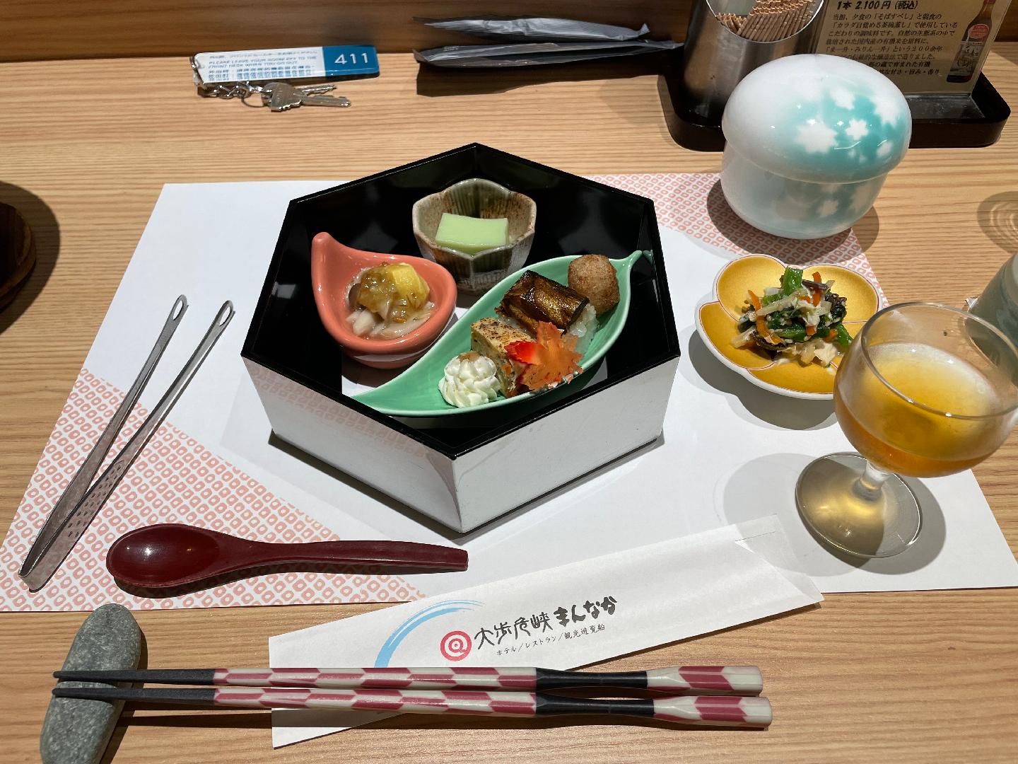 お食事: 祖谷の恵みを感じる和食は、どれも大変美味しくいただきました。小学校3年生の息子には、ハンバーグとエビフライのメニューをご用意いただき、子どもも大喜びで食べていました。