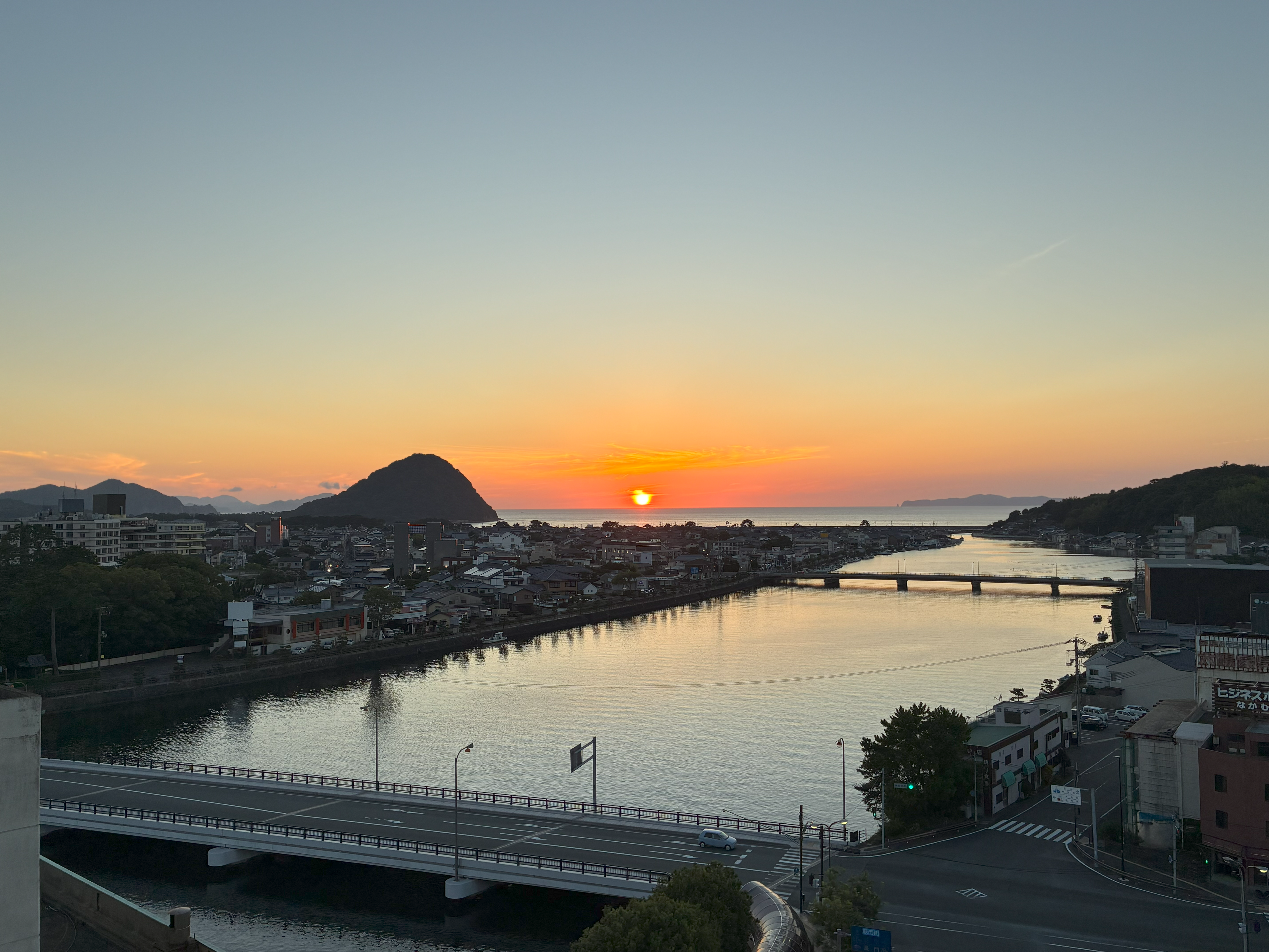 予想外だったのは屋上が解放されており、日本海に沈む夕日を眺められたこと。こんなところで見れるとは思わず日没まで眺めていました。