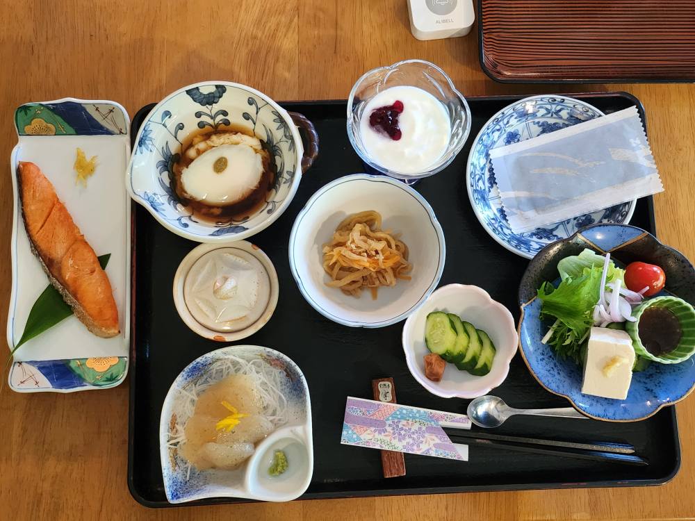 朝食:刺身蒟蒻美味しかったです。前月行った奥久慈でも刺身蒟蒻が美味しかったので、朝食惣菜に含まれていた時点でテンション上がりました(^_^)。それ以外の惣菜は、ご飯を食べすぎそうな惣菜ラッシュで、良い意味でご飯を食べすぎそうな気分になりました(;^_^A